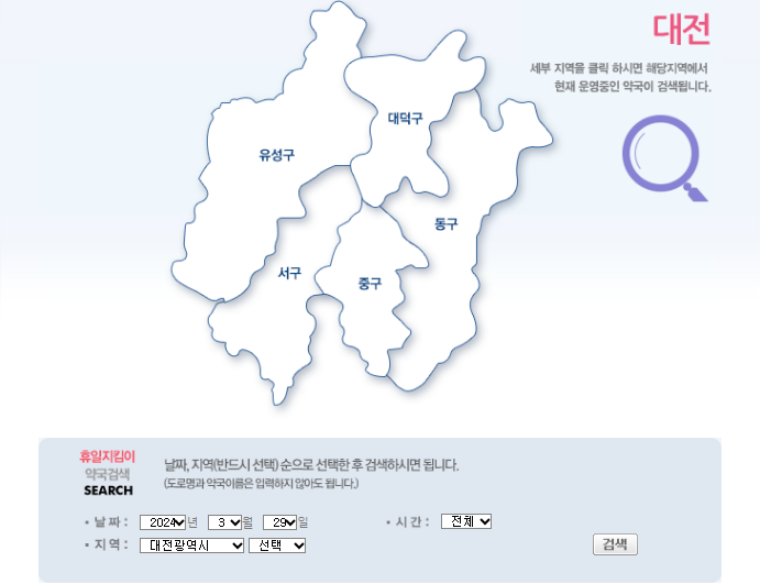 대전 대덕구 24시 약국 찾기 | 심야 야간 일요일 휴일 명절 근처약국