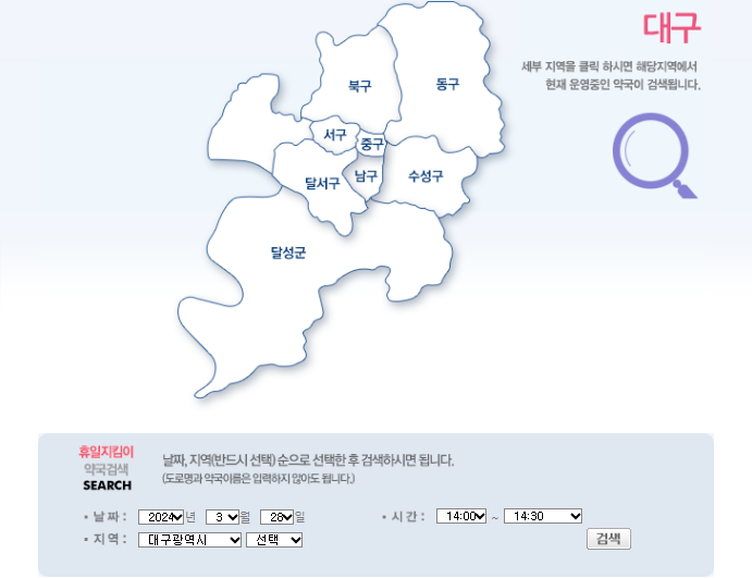 대구 동구 24시 약국 찾기 | 심야 야간 일요일 휴일 명절 약국