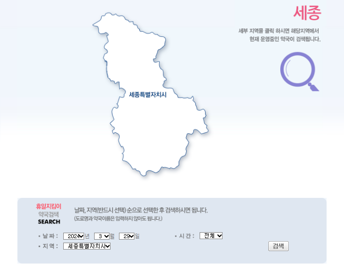 세종시 24시 약국 찾기 | 심야 야간 일요일 휴일 명절 근처약국